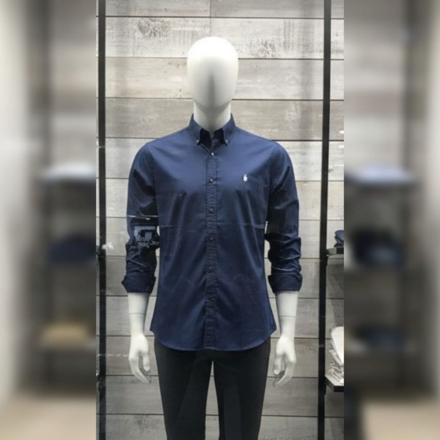 Navy Blue Button-Down Oxford Shirt, likely from the Polo Ralph Lauren collection (identifiable by the signature white/light-colored "Pony" logo on the left chest).