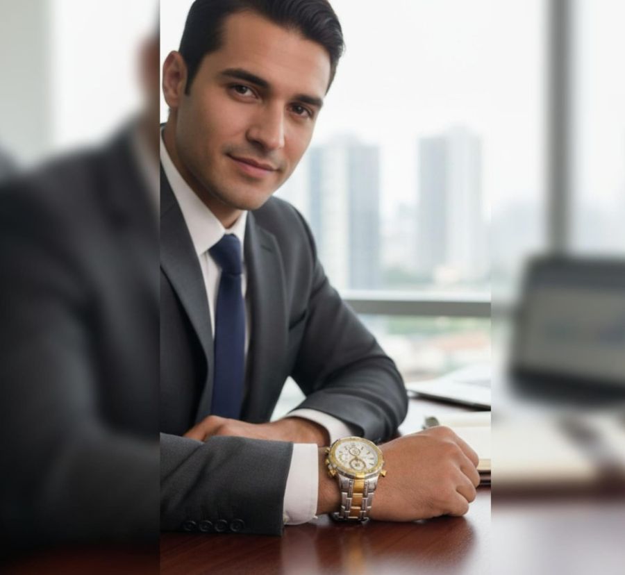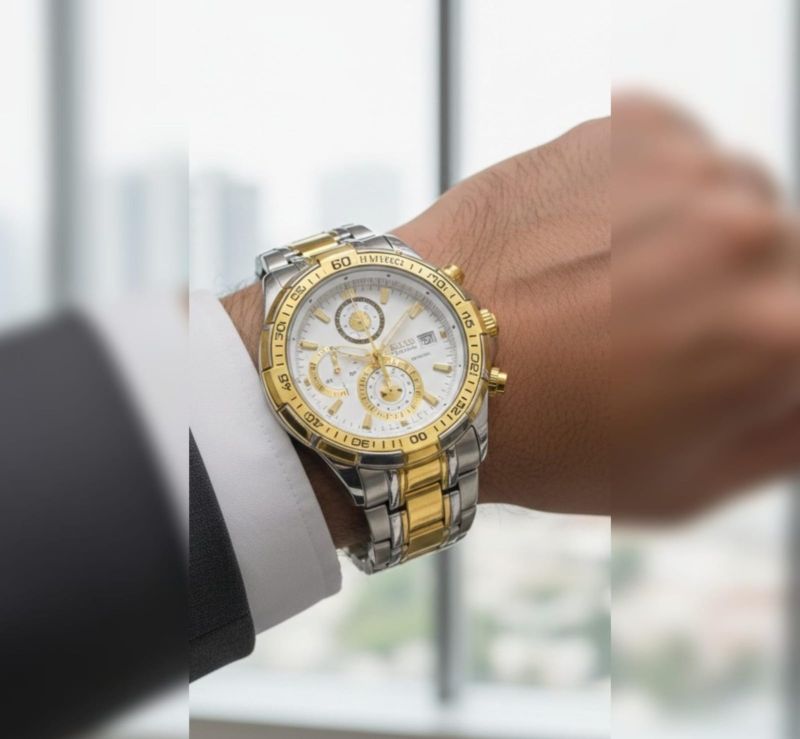 Chronograph Dial: You can see three sub-dials (usually for measuring elapsed seconds, minutes, and hours) which give it that "sporty" yet sophisticated look.