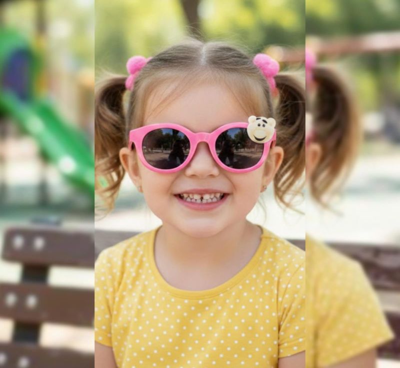 Brighten up your child's day with these adorable, vibrant pink sunglasses. Designed with a playful 3D Teddy Bear emblem on the frame, these shades offer a fun twist to essential sun protection. Whether it's a beach day or a park stroll, these lightweight frames ensure your little one stays comfortable and cool.