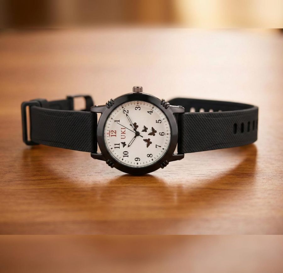 Add a touch of whimsical charm to your daily outfit with this stylish analog wristwatch. Featuring a crisp white dial adorned with delicate butterfly motifs, this watch perfectly balances playfulness with a sleek, modern aesthetic.