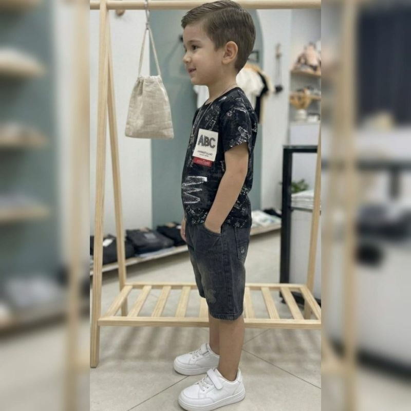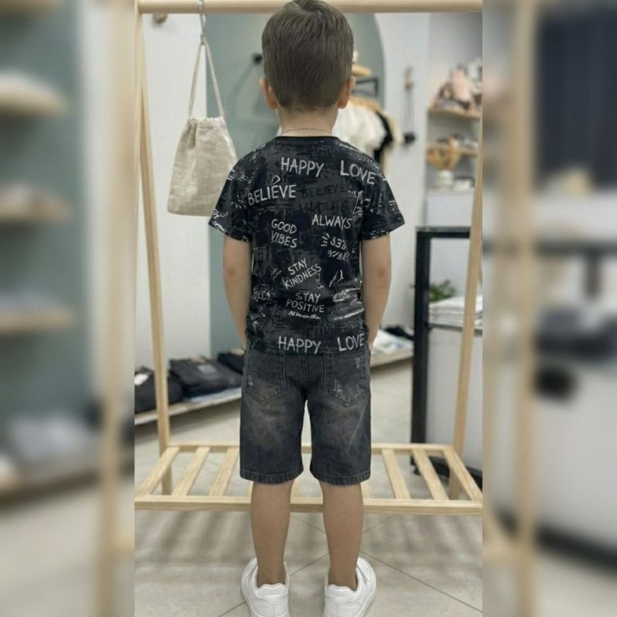 That’s a sharp-looking outfit! It definitely leans into that "urban cool" aesthetic that’s very popular for kids right now. The mix of distressed denim and graphic prints gives it a lot of personality.