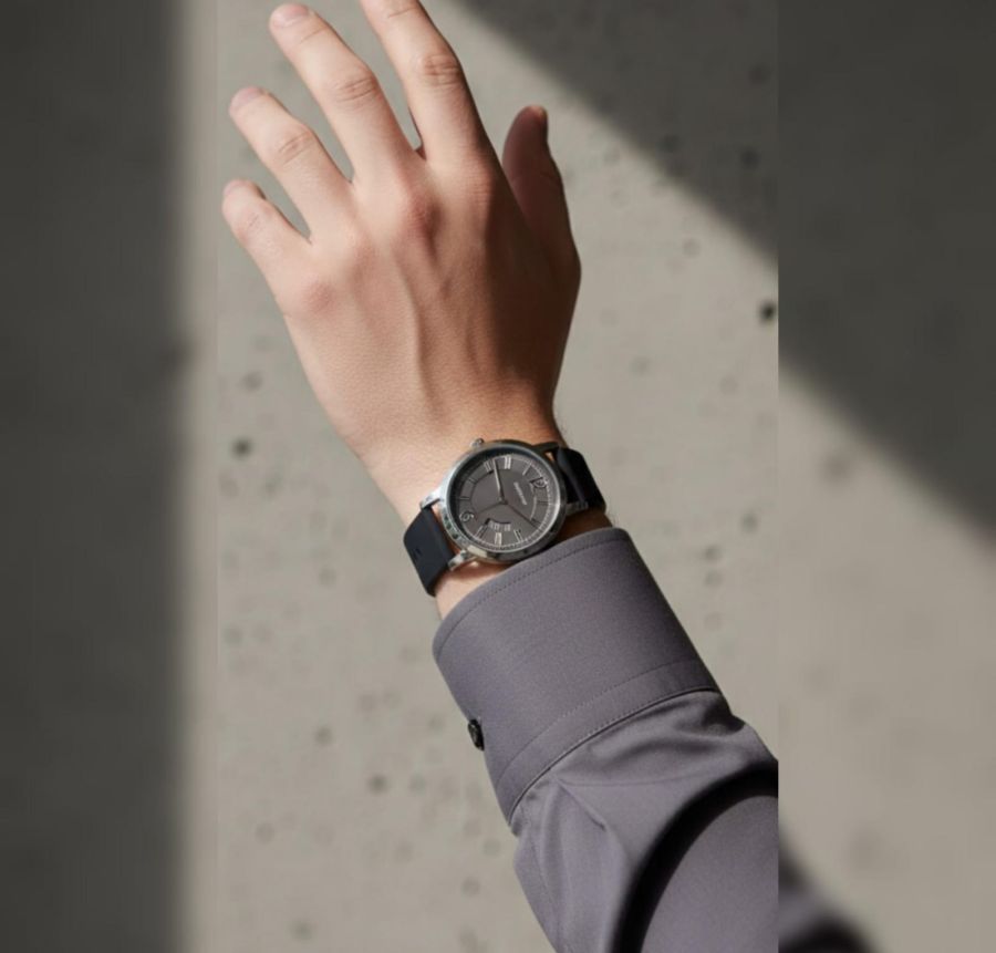 Elevate your wrist game with this sophisticated, minimalist timepiece. Featuring a matte charcoal dial encased in polished stainless steel, this watch blends architectural precision with everyday comfort