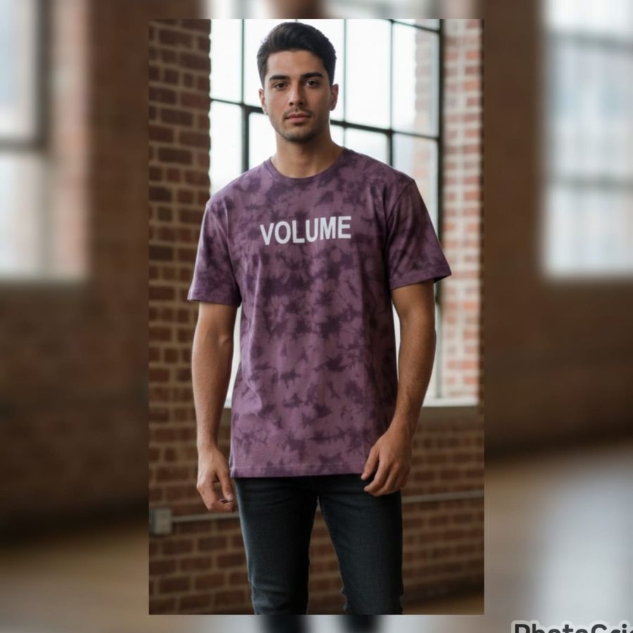 This tee brings a moody vibe with its deep purple and plum tie-dye wash. The crisp white "VOLUME" text across the chest provides a sharp contrast against the dark, cloudy pattern. Designed for comfort and style, it pairs perfectly with light-wash denim or black joggers.