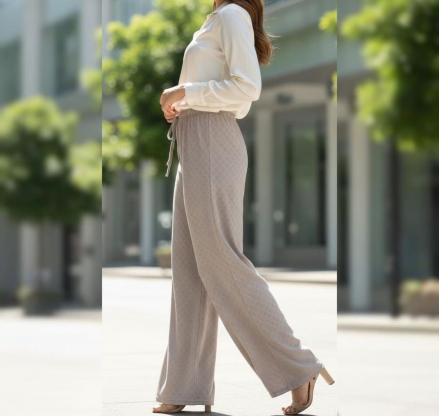 Step into ultimate comfort with these versatile wide-leg palazzo pants. Featuring a soft, textured fabric and a flexible drawstring waist, these lowers offer a perfect blend of style and ease. Whether you’re heading to the office, a casual brunch, or just lounging at home, their flowy design ensures a flattering fit for every silhouette.