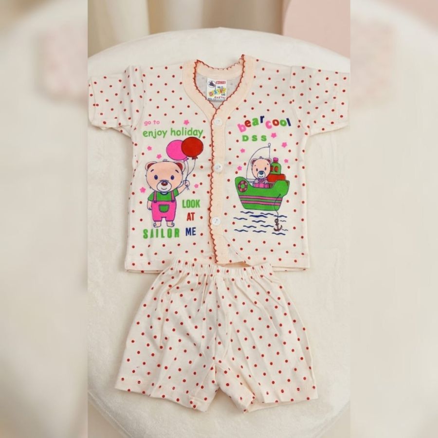 That is an adorable little outfit! It looks like a classic two-piece summer set for a baby or toddler, featuring a "sailor bear" theme.