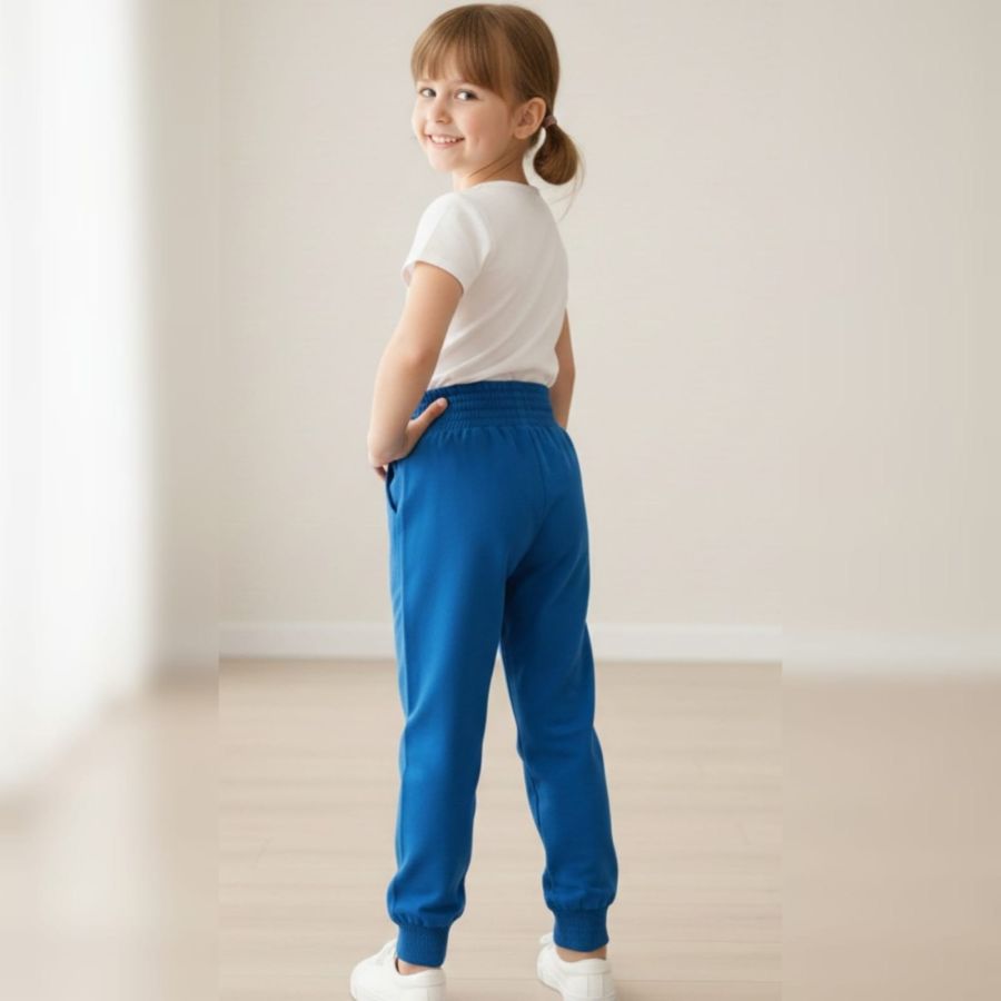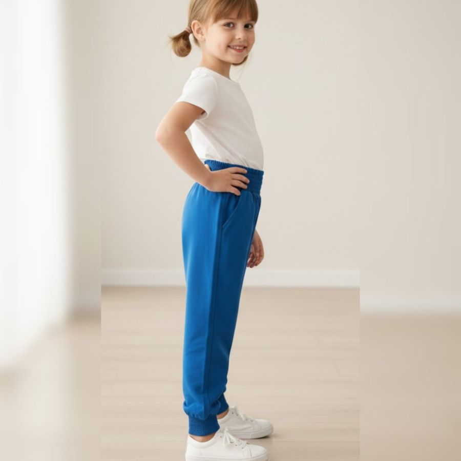 Those are a vibrant pair of cerulean blue joggers! They look like the perfect mix of "I'm productive" and "I'm ready for a nap."