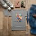 Design: A colorful teddy bear surrounded by abstract, brightly colored elements (reds, yellows, blues, pinks).