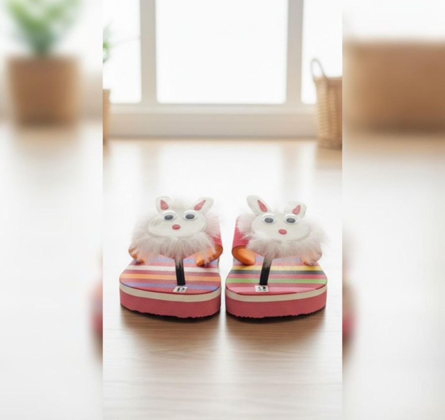 Brighten up your little one's day with the Bouncy Bunny slides. These lightweight flip-flops feature a fun, multi-colored striped base and a fluffy bunny face on the straps for a playful look. The soft, flexible foam sole provides easy comfort, making them perfect for indoor wear or sunny outdoor adventures.