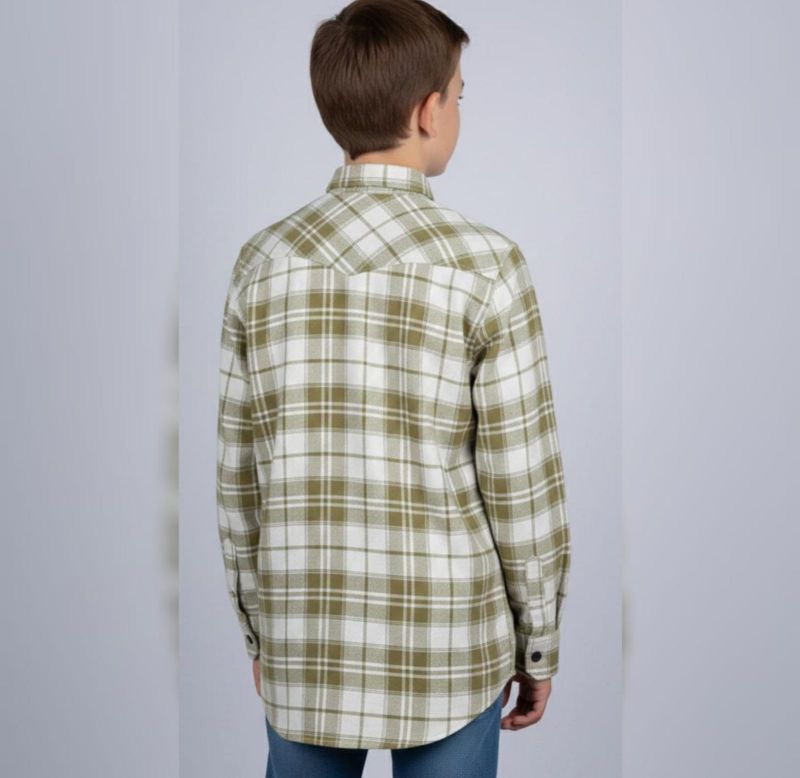 a classic olive and cream flannel shirt, perfect for a rugged yet clean casual look. Based on the "R" branding and the overall construction, this is likely a heavy-duty cotton or blended flannel.