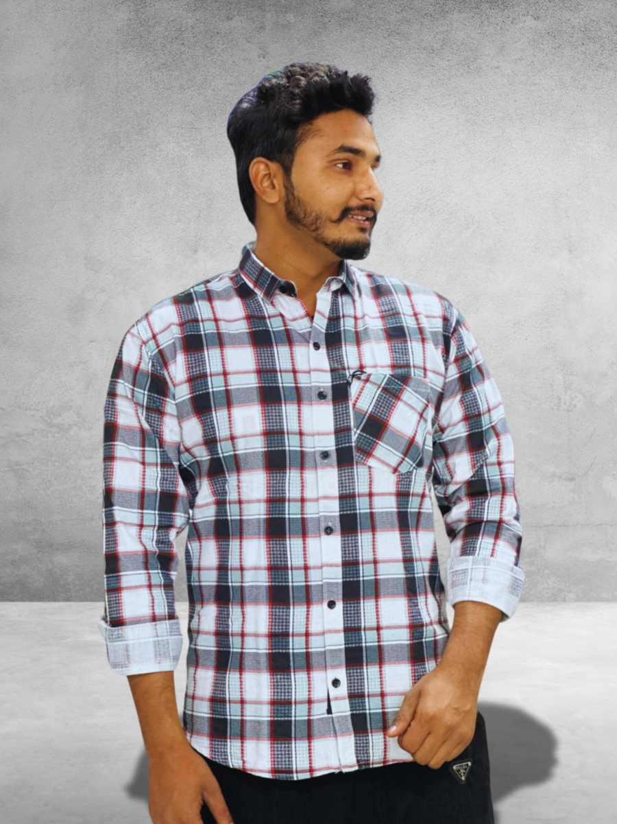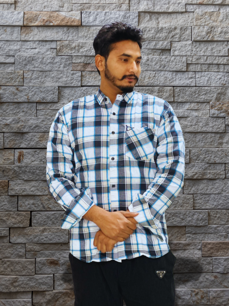 This men's check shirt is made from high-quality cotton fabric, ensuring superior comfort and breathability.