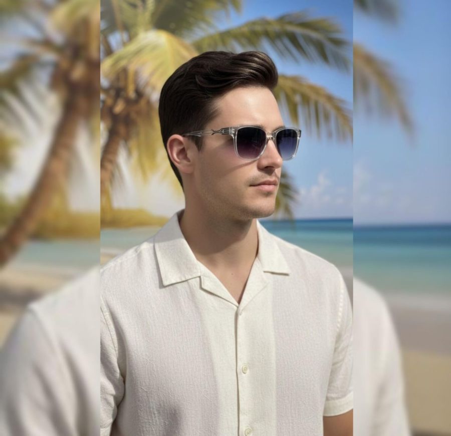 Experience the perfect fusion of clarity and style with the Elysian Crystal series. Designed for those who appreciate minimalist luxury, these sunglasses feature a transparent high-grade acetate frame paired with intricate metallic temple detailing.