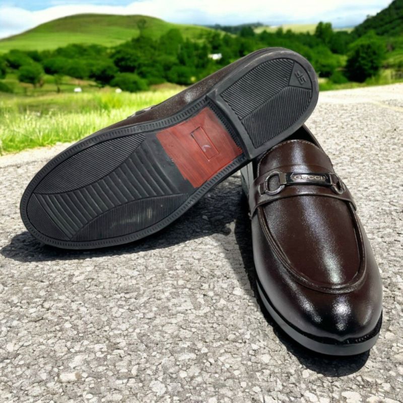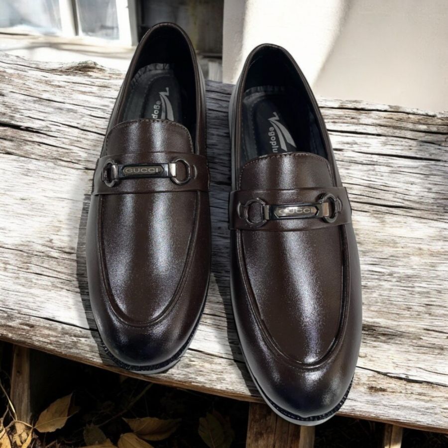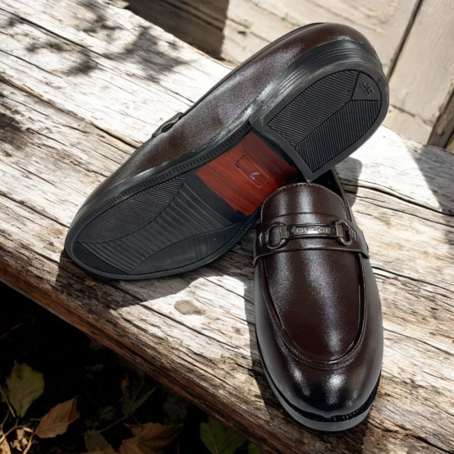 brownGucci Synthetic Leather Loafers – Timeless Luxury in Every Step.