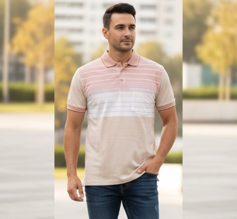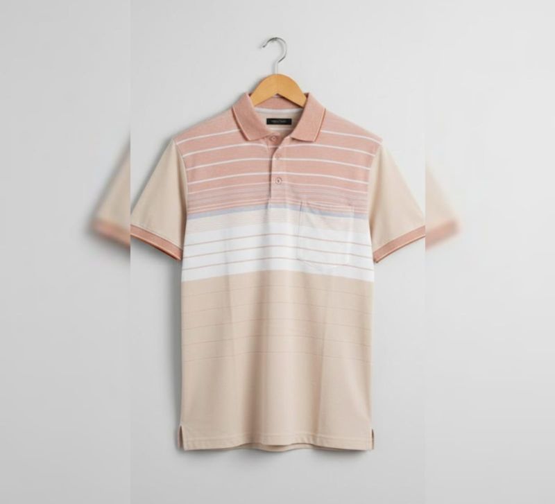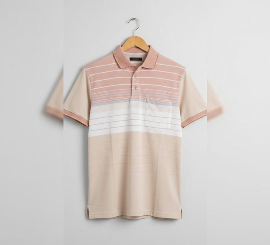 The Horizon Gradient Polo offers a modern twist on a classic style. Featuring a sophisticated tri-tonal design, this polo transitions through soft peach, crisp white, and earthy sand tones with delicate horizontal stripes. It includes a functional chest pocket, a standard three-button placket, and side-vented hems for maximum comfort. Designed for a relaxed fit, it’s the perfect choice for both coastal weekends and casual office days.