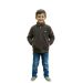 A child stands confidently with hands in jacket pockets, facing forward against a clean white background.