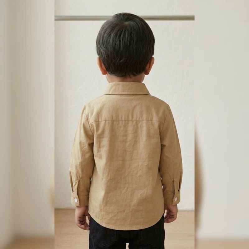 This is a toddler or young child's long-sleeved button-down shirt. It features a casual, stylized design inspired by graffiti or handwritten doodles.