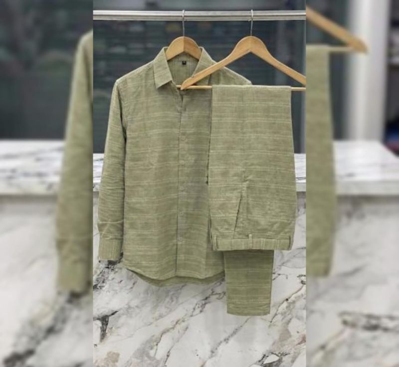 Redefine casual comfort with the Sage Horizon set. This matching shirt and trouser duo is crafted from a uniquely textured fabric featuring subtle horizontal micro-stripes. It’s the perfect blend of effortless style and modern sophistication for the man on the move.
