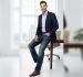 Background: The photo is taken inside a high-end clothing boutique. In the background, you can see: