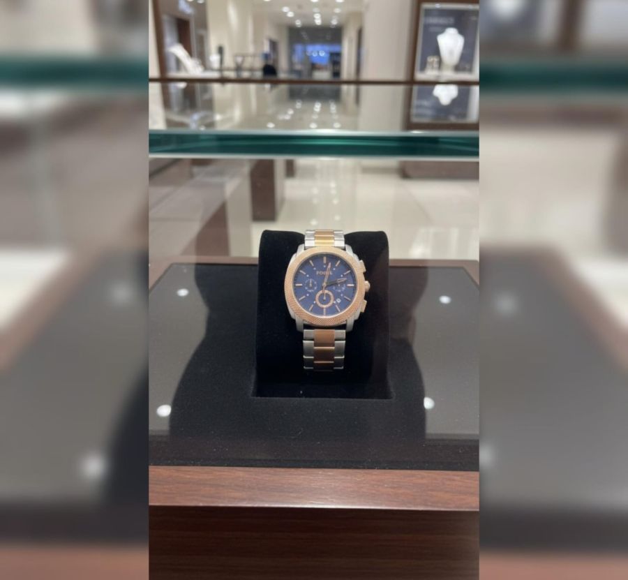 Elevate your style with the Fossil Navy Meridian Chrono, a masterclass in balanced design. This premium watch features a striking Navy Blue sunray dial housed in a high-grade Silver stainless steel case with a polished Rose Gold-tone bezel.
