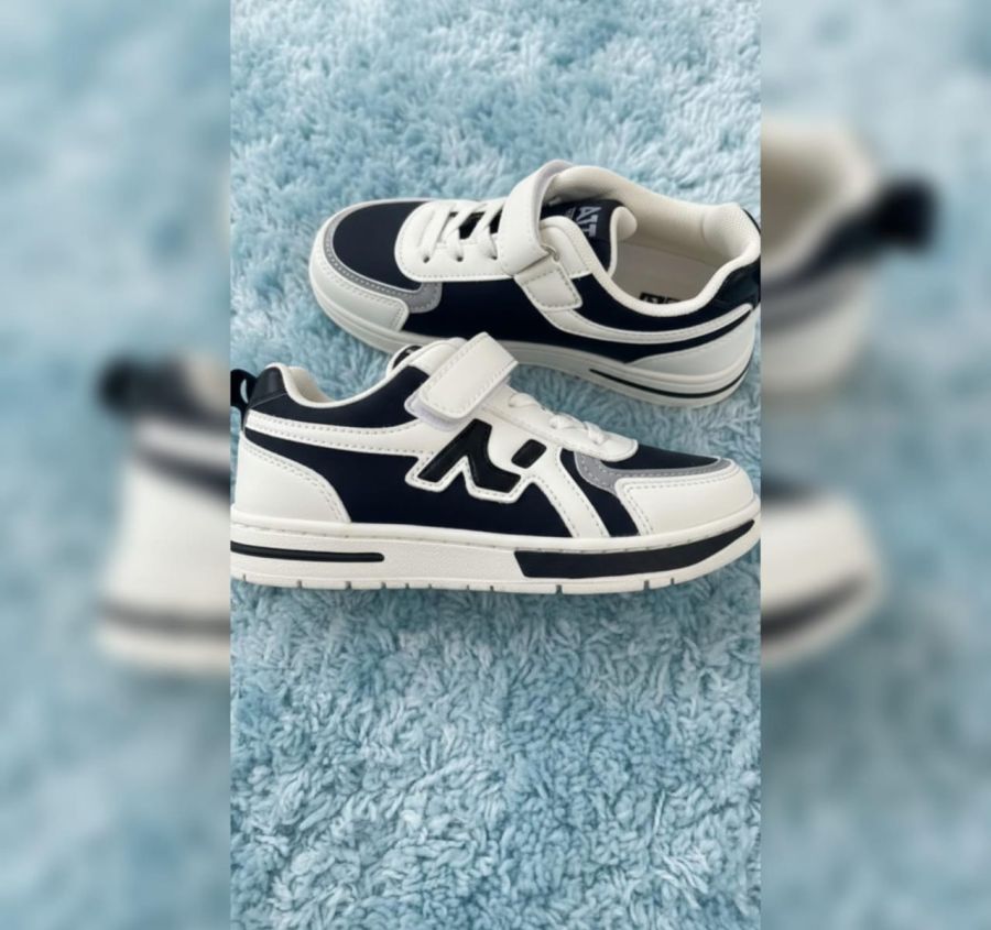 A stylish and durable pair of low-top sneakers designed for active kids. Featuring a secure hook-and-loop strap over elastic laces, these shoes provide a snug fit and easy "on-off" functionality. The high-contrast paneling and cushioned collar offer both a trendy aesthetic and all-day comfort.