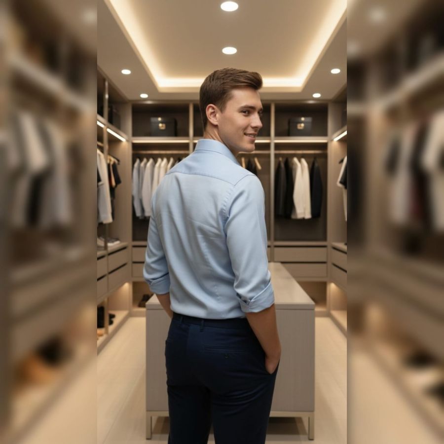 A classic long-sleeved button-down shirt that balances formal structure with a clean, modern aesthetic. Here is a detailed breakdown of the garment: