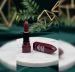 Packaging: * The base is a deep burgundy/maroon plastic with a unique, tiered square shape.