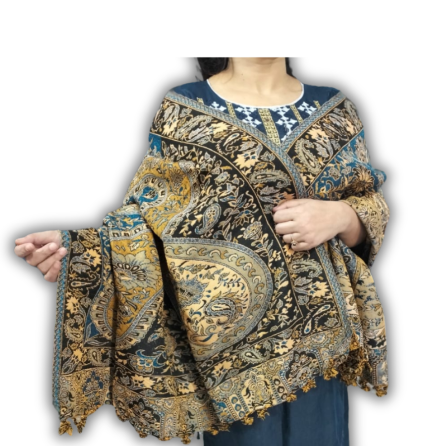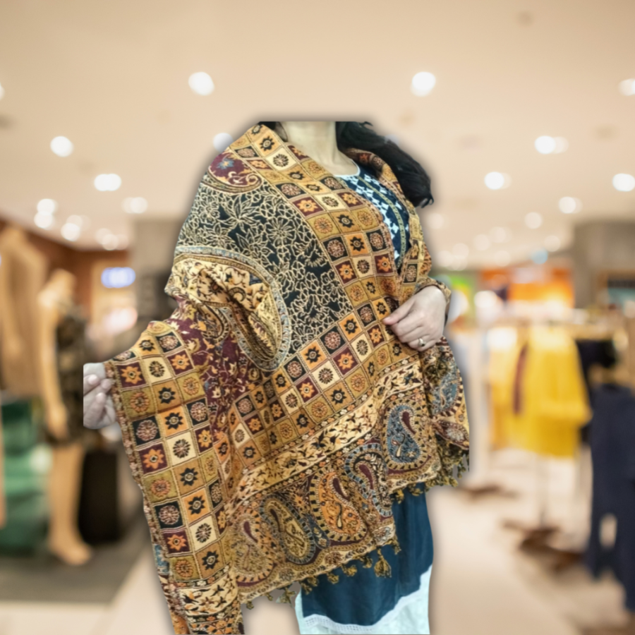 Luxurious Multi-Color Woolen Shawl featuring intricate traditional patterns, crafted from premium soft wool for warmth and elegance.