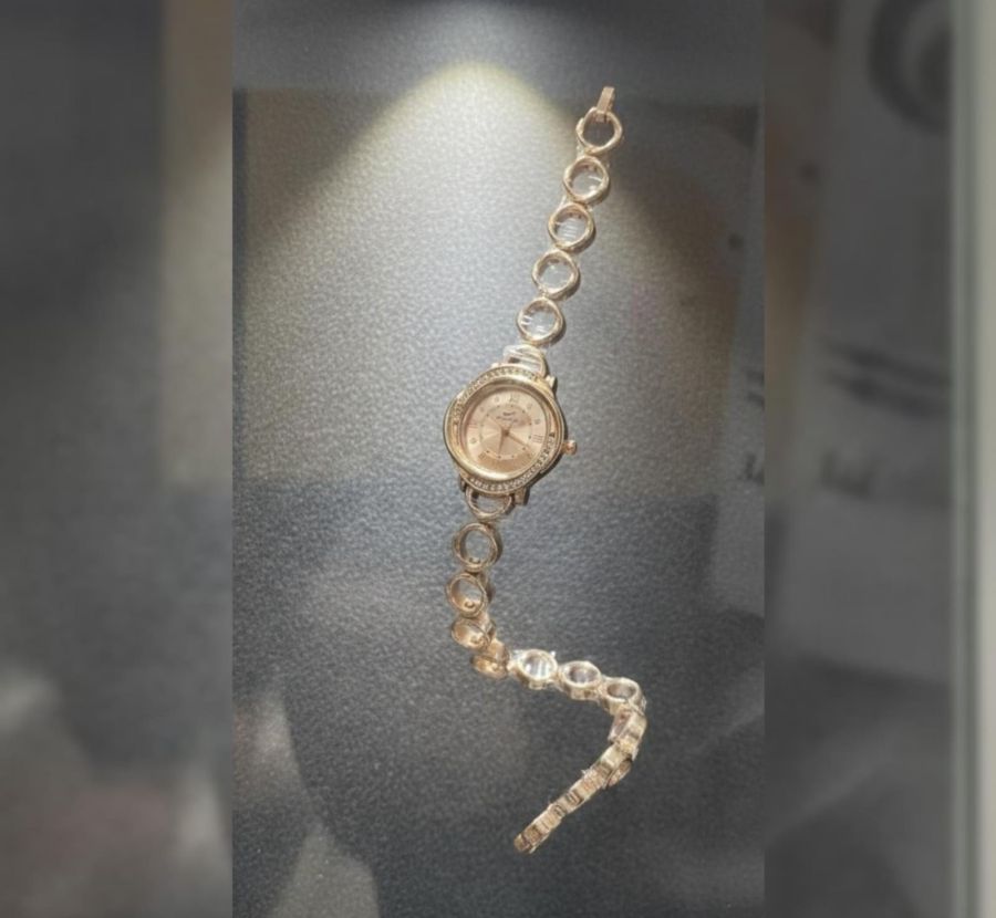 That is a very elegant, jewelry-style watch! It has a classic rose-gold or gold-tone finish that makes it feel more like a bracelet than a standard timepiece.