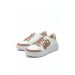 Short Description: Stay shining with these white sneakers accented with silver glitter hearts and "LOVE" branding. The design includes a subtle gold-line detail on the midsole and a unique heart-patterned outsole.