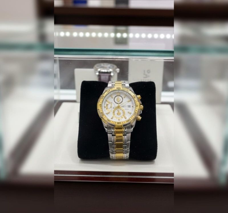 Two-Tone Finish: It uses a classic combination of stainless steel and gold-toned plating on the bezel and the center links of the bracelet.
