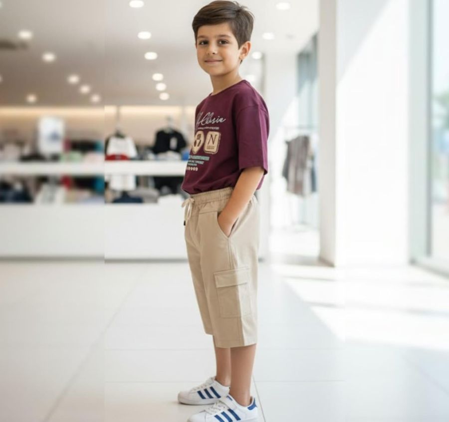 Dress your young trendsetter in this premium coordinated two-piece set. The outfit features a deep Olive Green crew-neck tee with high-definition "Billion" typography and varsity-style graphic patches on the chest and sleeves. It is paired with sophisticated Stone Grey utility-style shorts featuring an elasticated drawstring waist and subtle branding on the leg. Perfect for casual outings, birthdays, or weekend adventures.