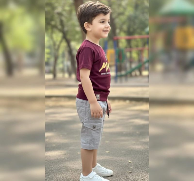 Inject some energy into your child's wardrobe with this premium coordinated short set. The outfit features a rich Burgundy (Maroon) crew-neck t-shirt detailed with striking "MAKE" typography in high-contrast yellow and high-quality graphic emblems on the chest and sleeves.