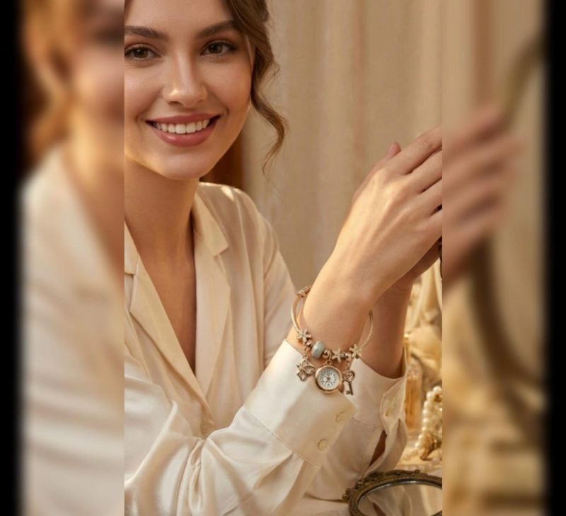 Gemini said This piece is a beautiful blend of jewelry and utility—a vintage-inspired charm bracelet watch. It has a very "shabby chic" or Victorian aesthetic that feels much more like an accessory than a traditional timepiece.